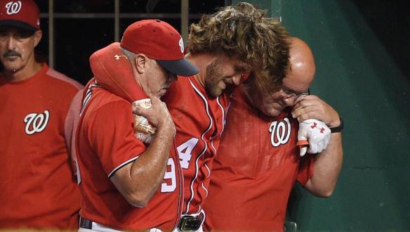 The Nationals can’t seem to get everything going in the same direction at the same time. Star pitcher goes down, bullpen improves, drop a bunch of games on the road, weather delays, and now Bryce goes down!! Stevie and Joe catch-up on all things Nats with an eye towards the playoffs and when the team may get all of its parts back ahead of the postseason push. As of now, Nats fans rest assured that the injury which looked season ending in real-time may only be a few weeks in duration… but let’s be real, Harper may have just lost tens of millions of dollars slipping on one wet bag in a meaningless August game! (Photo Credit: SportsOnEarth)